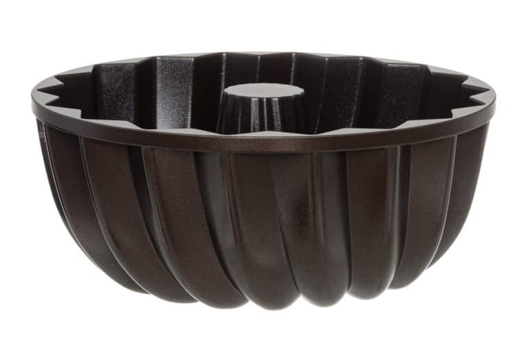 The classic-shaped cake pan is made of durable cast aluminum with a ceramic coating. The pan conducts heat quickly and evenly, ensuring cakes bake to a beautiful golden brown. Capacity: 2.4 L. Heat resistance up to 230 degrees. Hand wash only.