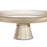 A stylish cake stand with a foot made of clear, beautifully grooved glass. Suitable for both everyday and festive table settings. Diameter 30 cm. Hand wash.