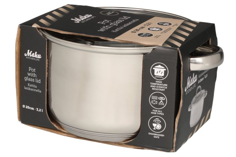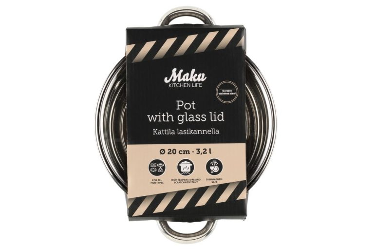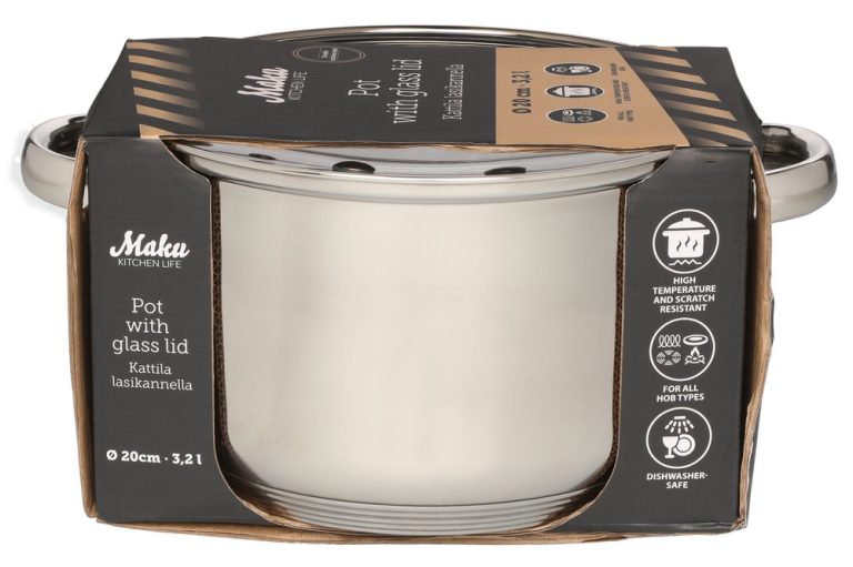 A durable stainless steel pot is always a reliable choice for the kitchen. Stainless steel pots withstand high temperatures and are resistant to scratches. Steel doesn’t react with acidic foods, so dishes like tomato sauces are made without any off-flavors. The glass lid features a steam release vent. Capacity 3.2 L. Compatible with all hobs. This easy-to-maintain stainless steel pot is dishwasher safe.