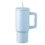 Fair sized thermos mug with lid ans straw. The double wall keeps the drink hot/cold. Stainless steel. Capacity 72 cl. Hand wash.