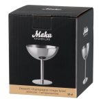 A vintage-inspired round-shaped coupe bowl with a foot is suitable for serving desserts and sparkling drinks. Dishwasher safe.
