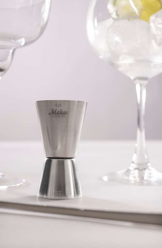 A double-sided jigger made of durable and stylish stainless steel. The smaller side measures 2 cl and the larger side 4 cl, allowing for precise and versatile pouring when preparing cocktails and other beverages. Hand wash.