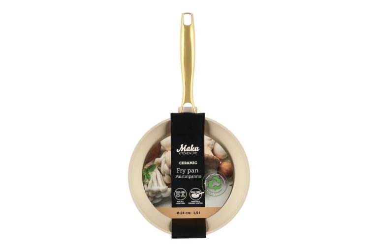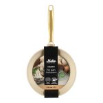 The beige fry pan with a gold-colored handle is the perfect choice for your kitchen, as it combines elegance and practicality. The sturdy body is made from forged aluminum, ensuring excellent heat conductivity and durability. The ceramic non-stick Greblon coating makes cooking effortless and cleaning easy. The pan’s gold-colored handle adds a touch of luxury to your cooking. This frying pan is suitable for all types of stoves, so you can use it confidently on gas, electric, and induction cooktops. For the best durability, we recommend hand washing.