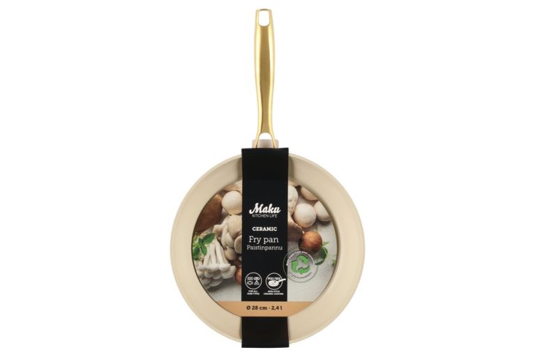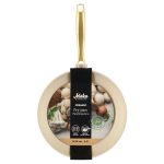 The beige fry pan with a gold-colored handle is the perfect choice for your kitchen, as it combines elegance and practicality. The sturdy body is made from forged aluminum, ensuring excellent heat conductivity and durability. The ceramic non-stick Greblon coating makes cooking effortless and cleaning easy. The pan’s gold-colored handle adds a touch of luxury to your cooking. This frying pan is suitable for all types of stoves, so you can use it confidently on gas, electric, and induction cooktops. For the best durability, we recommend hand washing.