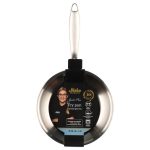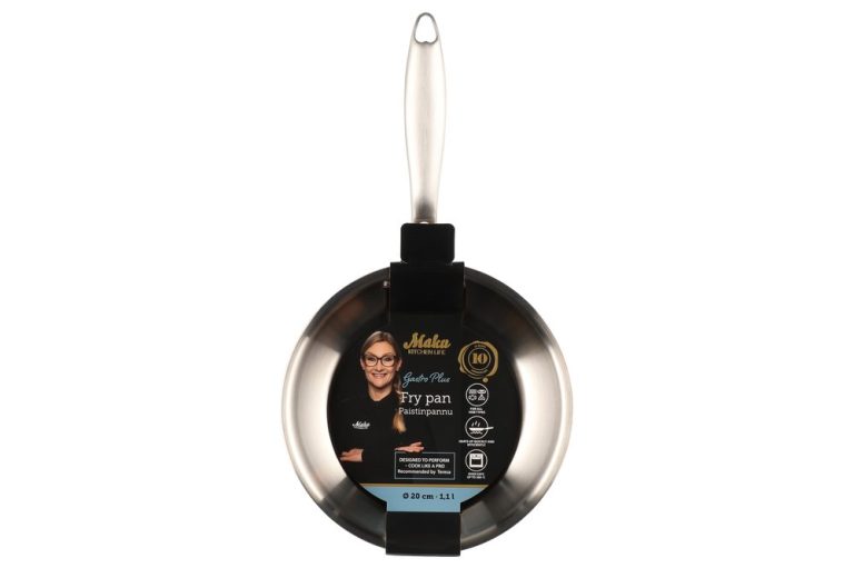 Maku Gastro Plus, a high-quality fry pan, is made of stainless steel and aluminum, ensuring excellent durability and heat distribution. The three-layer construction guarantees that food cooks evenly and quickly. The frying pan is compatible with all types of stoves, including induction. Oven safe up to 280 degrees Celsius, allowing versatile use in the oven. Capacity 1.1 L. The fry pan is dishwasher safe, making it easy to clean.