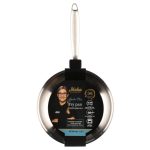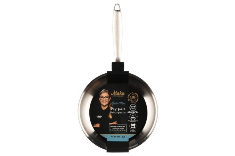 Maku Gastro Plus, a high-quality frying pan, is made of stainless steel and aluminum, ensuring excellent durability and heat distribution. The three-layer construction guarantees that food cooks evenly and quickly. The frying pan is compatible with all types of stoves, including induction. Oven safe up to 280 degrees Celsius, allowing versatile use in the oven. Capacity 1.5 L. The frying pan is dishwasher safe, making it easy to clean