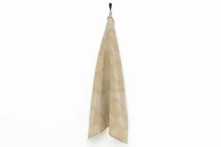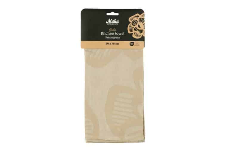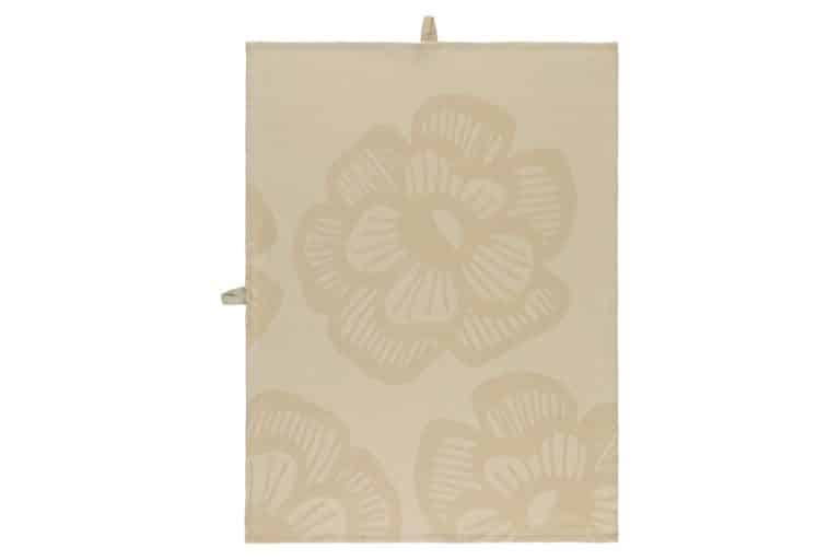 Jacquard woven kitchen towel with flower design.