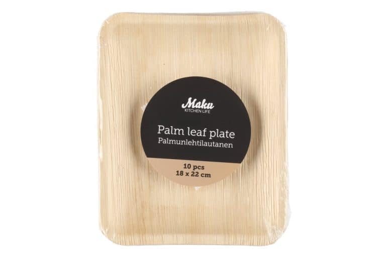 A sturdy disposable plate made from naturally fallen palm leaves. An excellent alternative to other disposable plates. The palm leaf plate is a stylish way to serve fruit, desserts, side dishes, small salads, appetizers, and much more! 100% natural product. Biodegradable: dispose of as biowaste or by home composting. The product composts in home compost in 3-6 weeks. Rectangular shaped, size 18 x 22 cm.