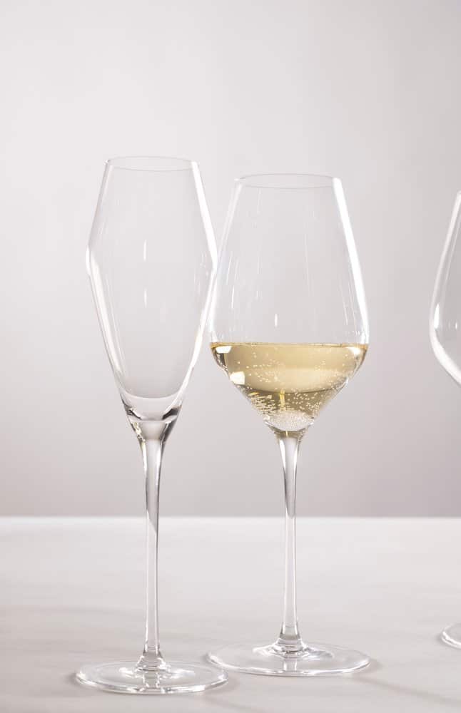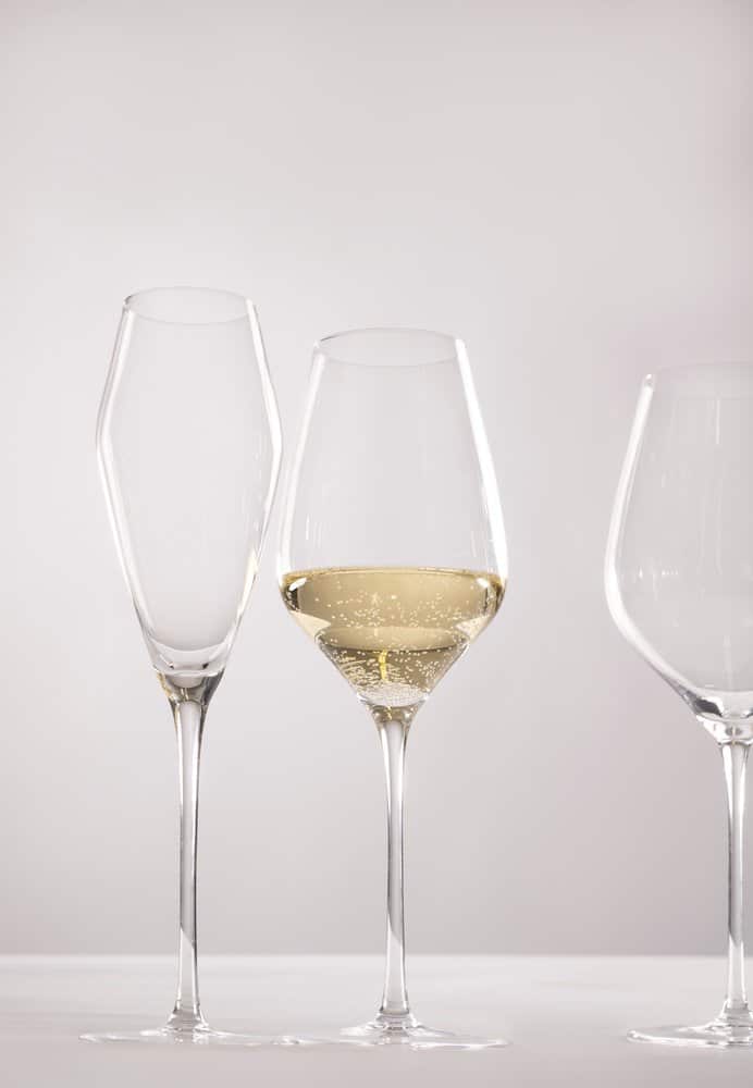 A thin and refined hand-blown wine glass. Made from 100% recycled glass collected from consumers. Dishwasher safe. Place the wine glasses carefully in the washing machine so that they do not move during the wash. Specially recommended for Riesling and rosé wines, wines made of Zinfandel/ Sangiovese and for champagnes.
