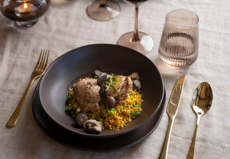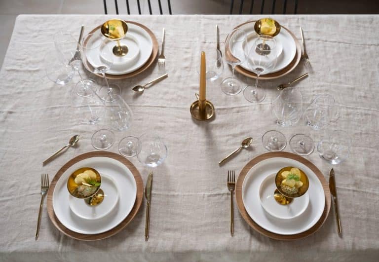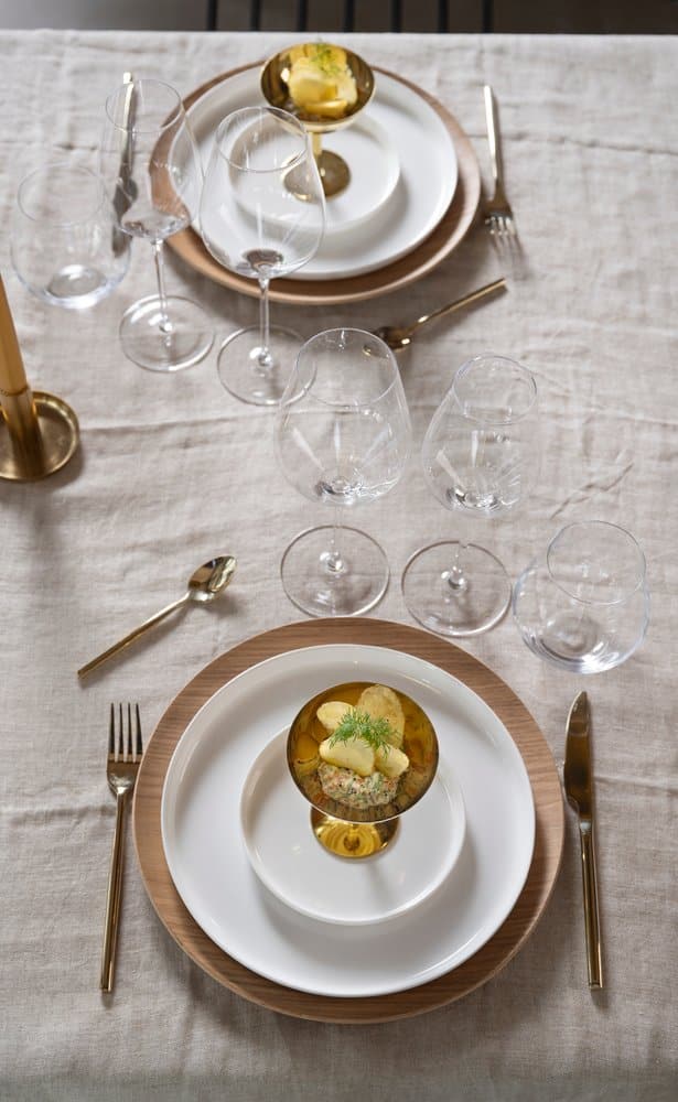 Maku Resteel cutlery enchants with its understatedly elegant design and beautifully polished gold‑colored finish. The products are made from 100% post‑consumer recycled stainless steel. The set includes 4 knives, 4 forks, 4 spoons, and 4 teaspoons. Hand wash recommended.