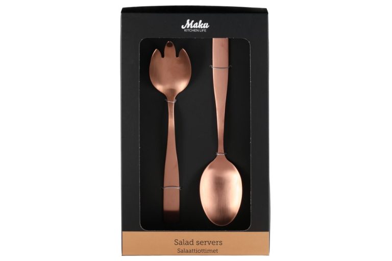 Stylish salad servers are an essential part of a beautiful table setting. Rose gold is an exciting colour choice for the table, perfect when you want to surprise. The stainless steel is coated with a durable PVD finish. Length 21,8 cm. Thickness 2 mm. Hand wash.