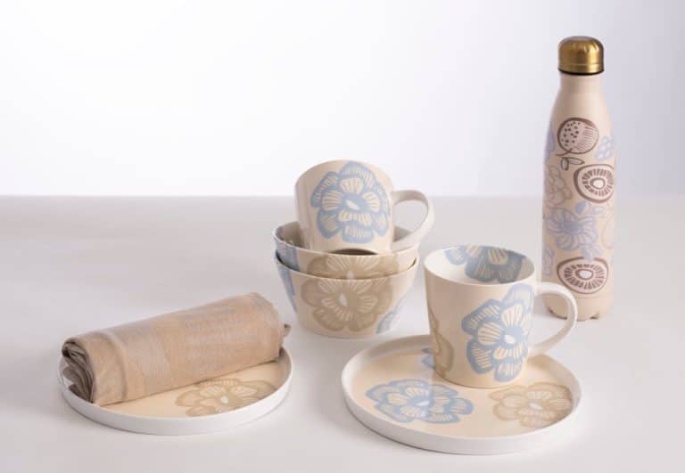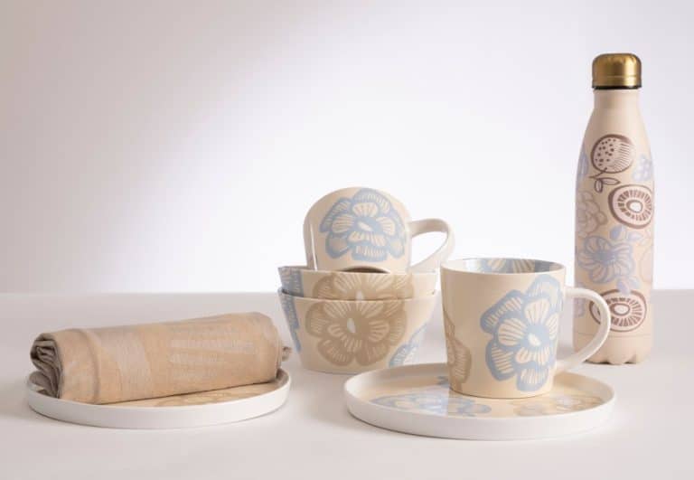 The Sarka Pattern, designed by Hannele Kiviniemi, is rooted in the charm of the vegetable garden: natural tones, botanical patterns and bold ink strokes give the design its unique character. Ceramic Sarka plate with Patula pattern. Microwave, freezer, and dishwasher safe.