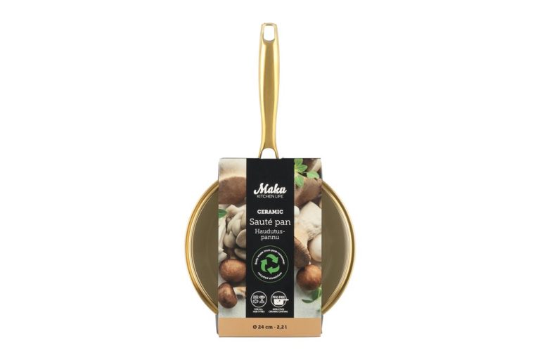 The beige sauté pan with a gold-colored handle is a perfect choice for your kitchen, combining elegance with practicality. The sturdy body is made of forged aluminum, ensuring excellent heat conductivity and durability. The ceramic non-stick Greblon coating makes cooking effortless and cleaning easy. The gold-colored, beautifully shaped handle adds a touch of luxury to your cooking experience. The sauté pan is suitable for all types of stovetops, so you can use it confidently on gas, electric, and induction. For best durability, we recommend hand washing.