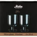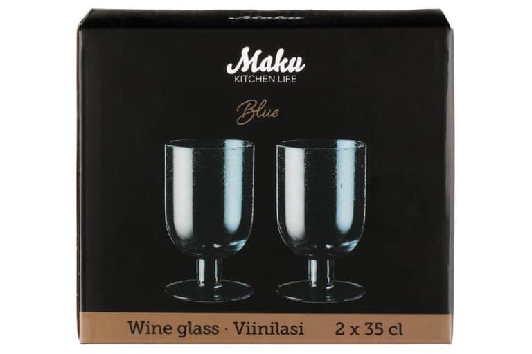 The Maku wine glass is a delicate light blue. Small air bubbles in the glass give the glass a light look. Suitable as a wine glass as well as for serving water, soft drinks or drinks. Capacity 35 cl. Dishwasher safe.
