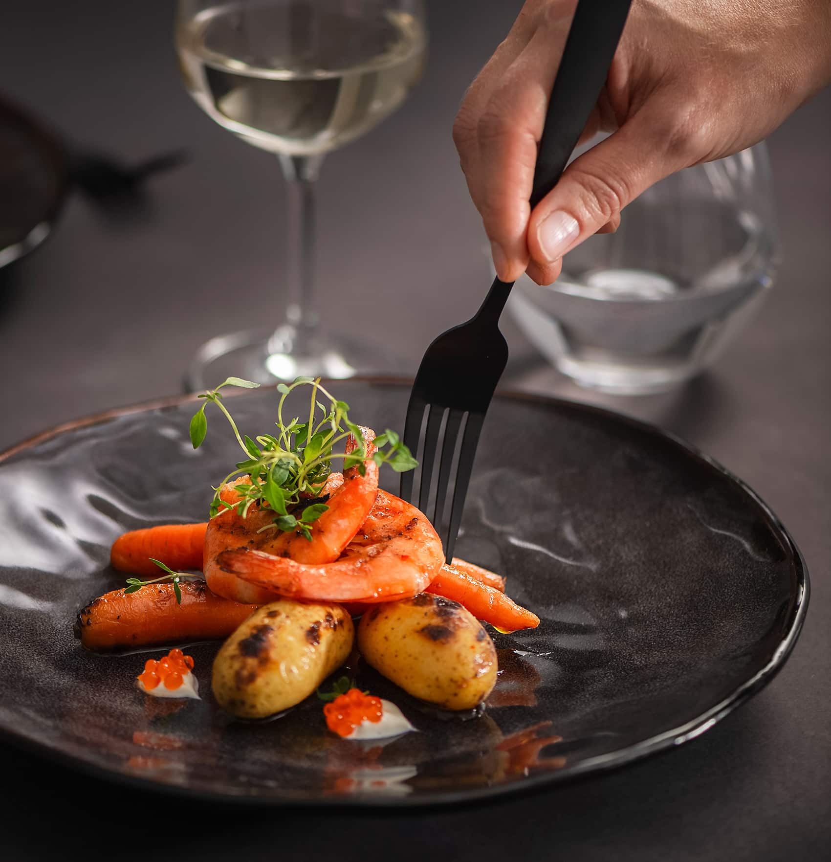 Raakoja, kuorittuja jättiravunpyrstöjä (3-4kpl syöjää kohden)