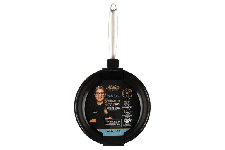 Maku Gastro plus, laadukas paistinpannu on valmistettu ruostumattomasta teräksestä ja alumiinista, mikä takaa erinomaisen kestävyyden ja lämmönjakautumisen. Kolmikerrosrakenne varmistaa, että ruoka kypsyy tasaisesti ja nopeasti. Erittäin hyvin kulutusta kestävä keraaminen Fusion Pro II pinnoite kestää korkeita lämpötiloja. Paistinpannu on yhteensopiva kaikkien liesityyppien kanssa, mukaan lukien induktio. Uuninkestävä jopa 280 asteeseen saakka, joten voit käyttää sitä monipuolisesti myös uunissa. Vetoisuus 1,5 L. Suositellaan käsinpesua.