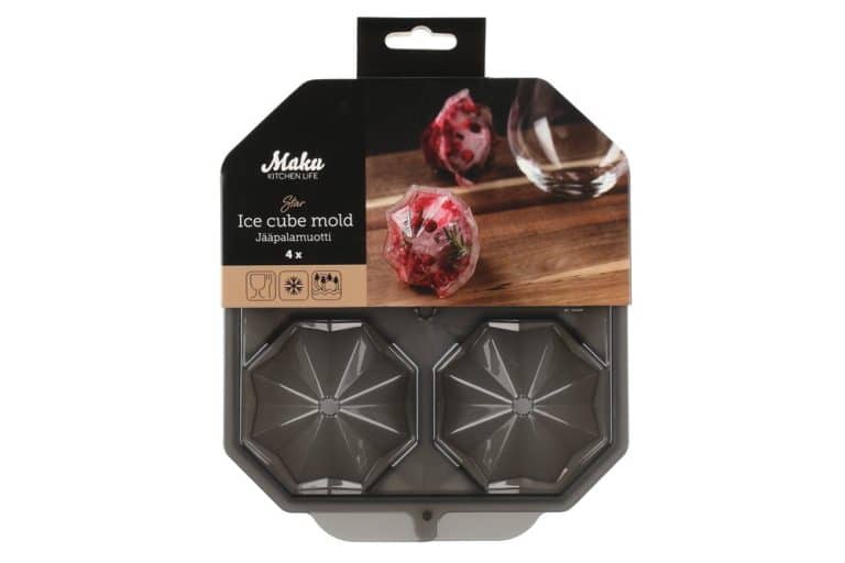 Jääpalamuotilla voi valmistaa 4 isoa tähdenmuotoista jääpalaa. Mukana tuleva suppilo tekee täyttämisestä helppoa ja siistiä. Konepesun kestävä.