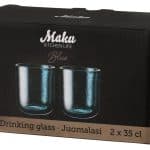 Maku juomalasi on hennon vaaleansininen .Lasin pienet ilmakuplat antavat kulhoille keveän pirskahtelevan ilmeen. Vetoisuus 35 cl. Konepesun kestävä.