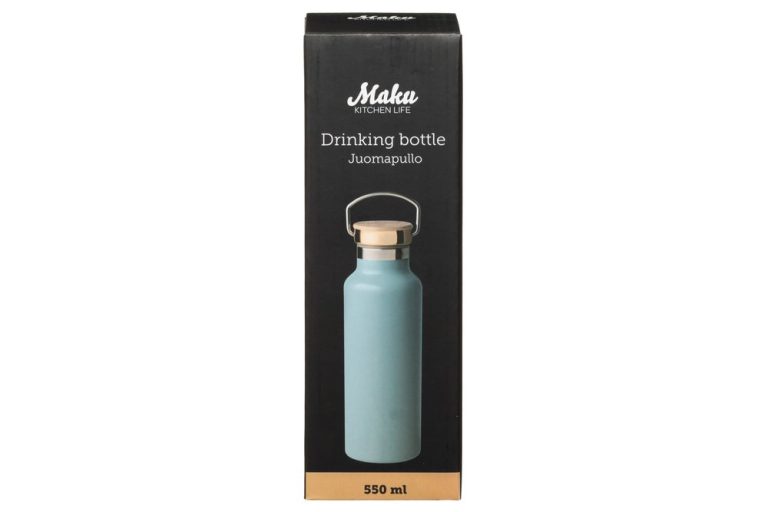Tyylikäs tuplaseinämäinen juomapullo tiiviillä bambu kannella. Tuplaseinämä pitää juoman kylmänä/ kuumana pitempään. Vetoisuus 550 ml. Käsinpesu.