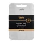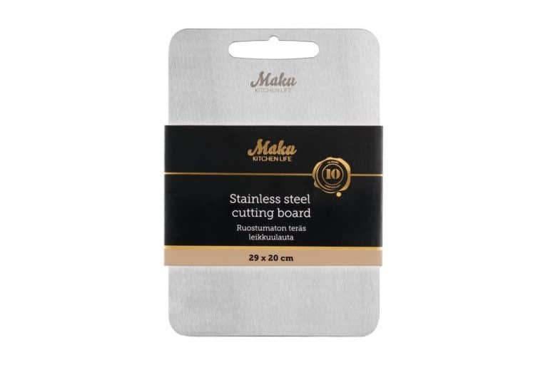 Ruostumattomasta teräksestä valmistettu leikkuulauta on hygieeninen ja helppo puhdistaa. Teräksinen pinta estää bakteerien ja hajujen imeytymisen, mikä takaa puhtaan ruoanvalmistuksen. Kestävä ja turvallinen valinta keittiöön. Konepesun kestävä.