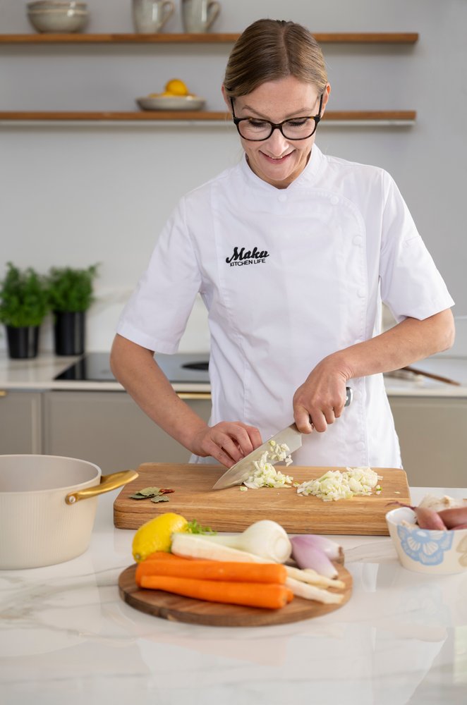 Laadukas ja tyylikäs Pakka wood kokkiveitsi on valmistettu laadukkaasta saksalaisesta Vanadium 1.4116 teräksestä. Kovuus HRC 56 +/- 2. Veitsen kahva on kaunista ja erittäin kestävää pakkapuuta. Käsinpesu.