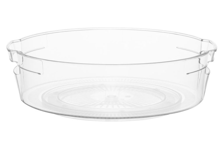 Pyörivä tarjotin, jonka avulla yletyt tavaroihin helpommin. Kätevä säilytyksessä ja tarjoilussa. Korkea reuna pitää pullot ja purnukat tarjottimella. Lämmönkesto -60 – 80 astetta. Käsinpesu.