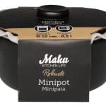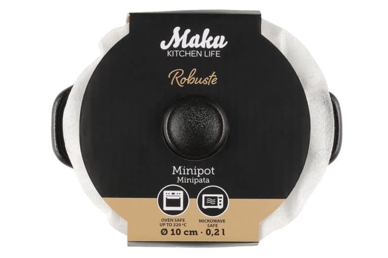 Tyylikäs keraaminen minipata yksittäisten annosten valmistukseen ja tarjoiluun. Vetoisuus 200 ml. Halkaisija 10 cm. Lämmönkesto max. 220 astetta. Uunin, mikron ja konepesun kestävä.