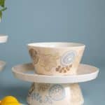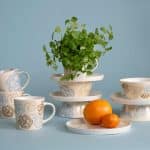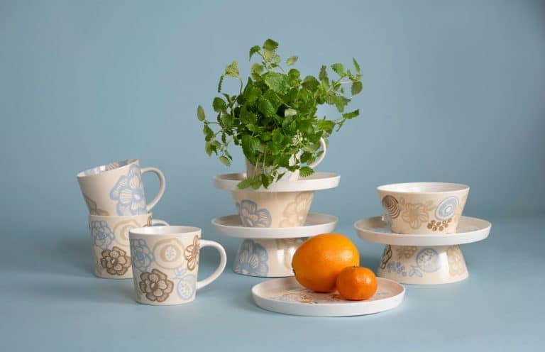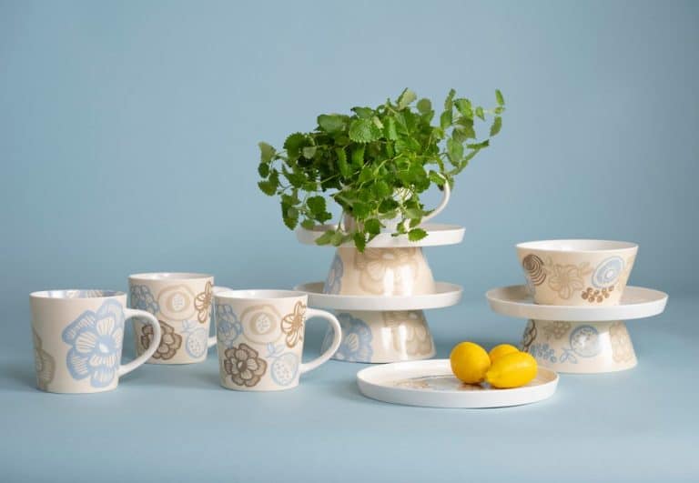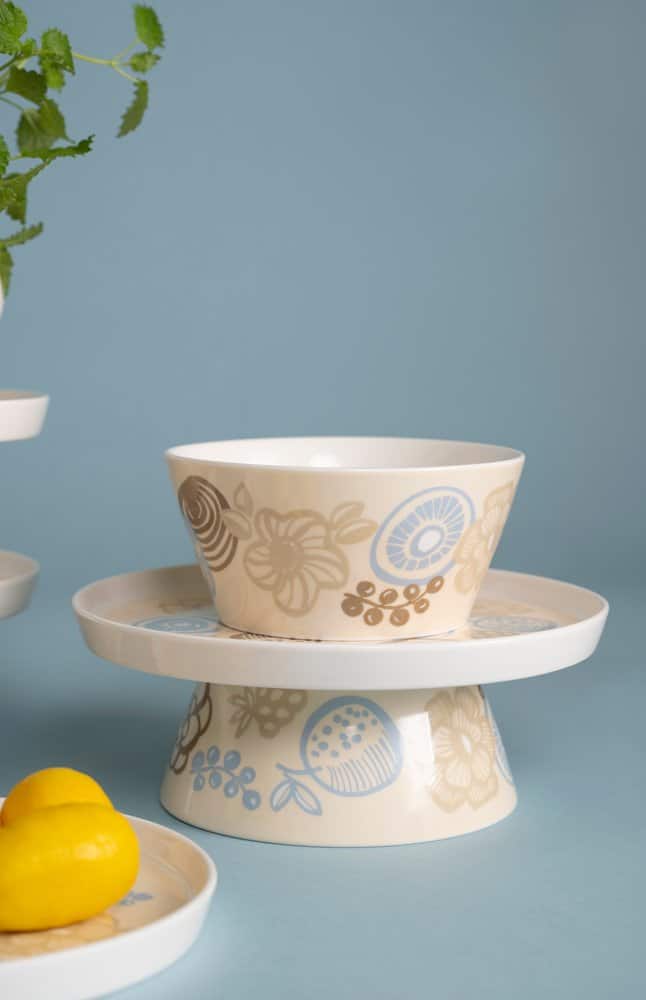 Hannele Kiviniemen suunnitteleman Sarka-kuosin juuret ovat kasvimaassa: luonnonläheiset värit, kasviaiheiset kuviot ja rohkea tussijälki antavat Sarka-sarjalle sen ainutlaatuisen ilmeen. Keraaminen Sarka-kulho. Mikron, pakastamisen ja konepesun kestävä.