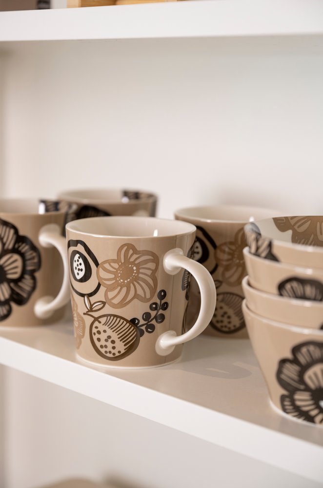 Hannele Kiviniemen suunnitteleman Sarka-kuosin juuret ovat kasvimaassa: luonnonläheiset värit, kasviaiheiset kuviot ja rohkea tussijälki antavat Sarka-sarjalle sen ainutlaatuisen ilmeen. Keraaminen Sarka-muki. Vetoisuus 45 cl. Mikron, pakastamisen ja konepesun kestävä.