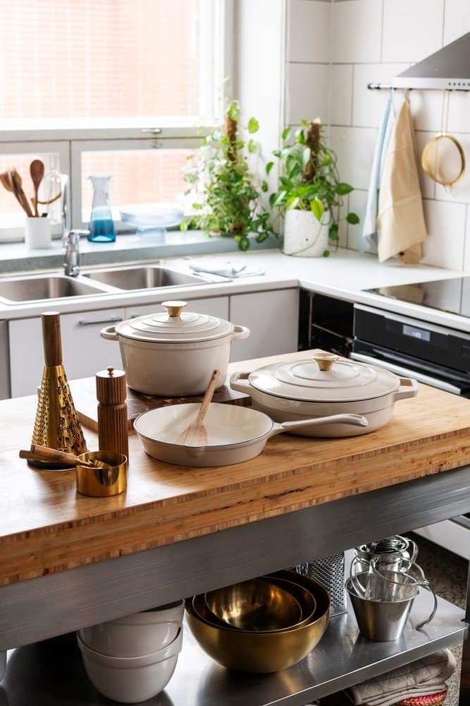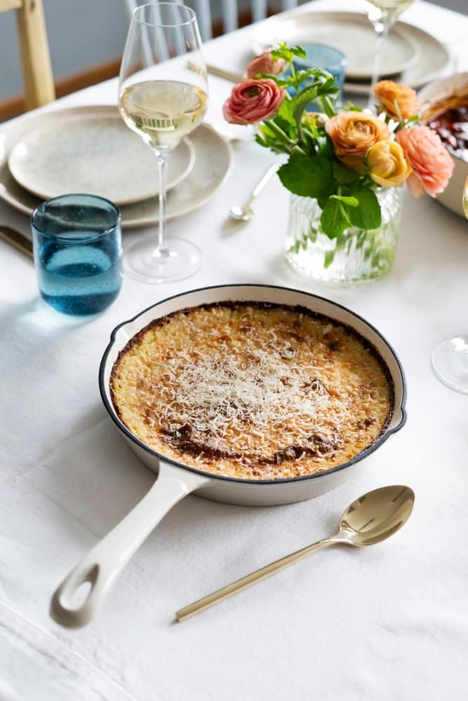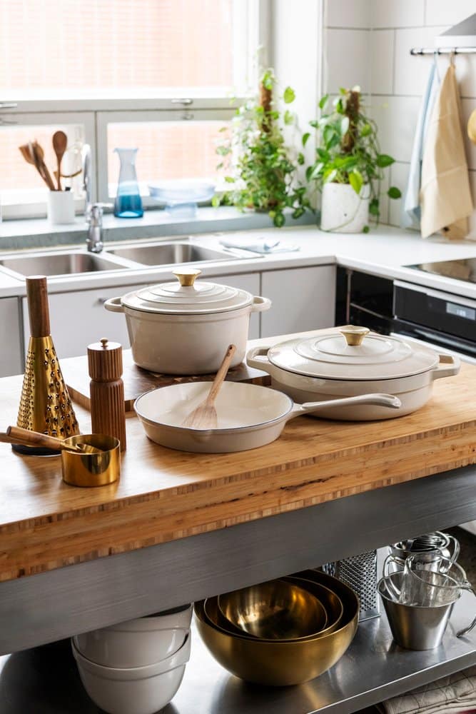 Ajattoman kaunis ja käytännöllinen – tämä beige emaloitu valurautapannu yhdistää muotoilun ja toimivuuden. Kaatonokat molemmin puolin helpottavat tarjoilua, ja pannu toimii kaikilla liesityypeillä sekä uunissa jopa 250 °C asti. Kestävä valinta, joka vain paranee käytössä. Käsinpesu.