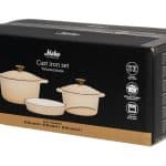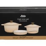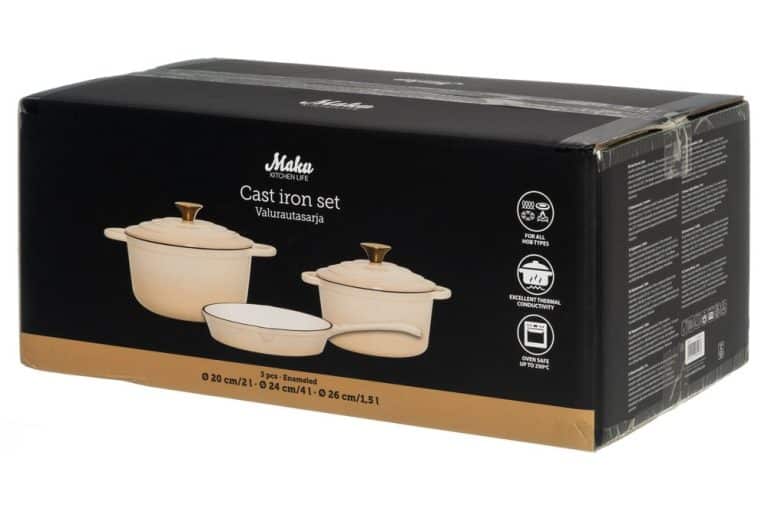 Täydellinen setti ruoanlaiton ystävälle. Emaloitu valurautasarja sisältää kaksi pataa (20 cm / 2 L ja 24 cm / 4 L) sekä 26 cm paistinpannun. Kaikki osat sopivat kaikille liesityypeille, myös induktiolle, ja kestävät uunissa jopa 250 °C. Kestävä rakenne ja erinomainen lämmönjakautuminen tekevät sarjasta luotettavan kumppanin päivittäiseen ruoanlaittoon. Käsinpesu.