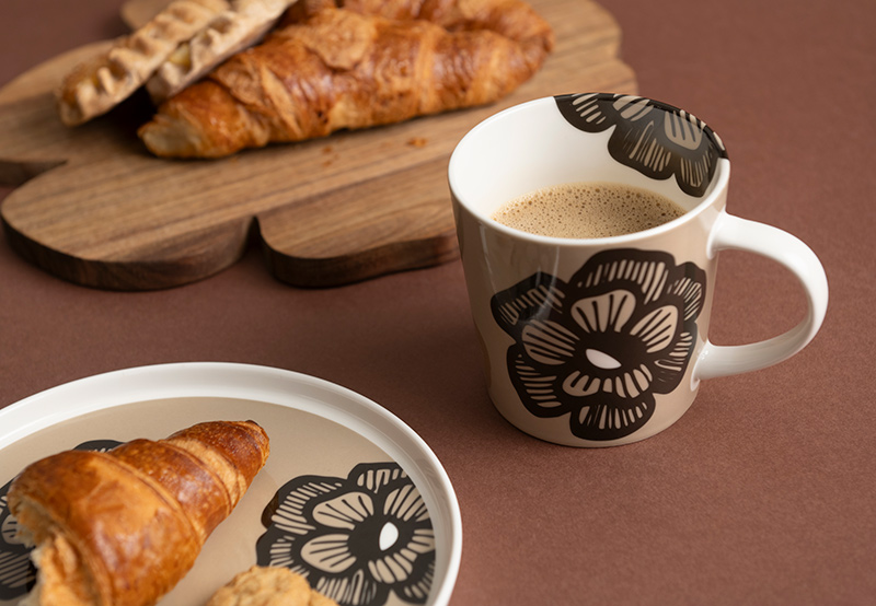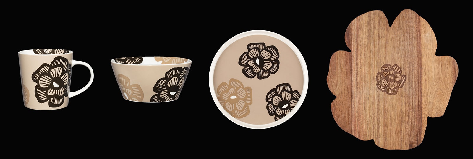 Beigen sävyinen Sarka Patula -kuosi on sarjan suosikki, joka hurmaa ajattomuudellaan. Kuosi jatkaa Makun valikoimassa, joten se on täydellinen lahja vaikkapa sarjan keräilijälle.