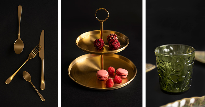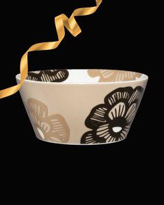 Kulta tuo juhlavan tunnelman niin pöytään kuin joulupakettiin. Kauniissa, läpivärjätyissä Tarha-laseissa on puutarha-aiheinen kohokuvio ja ne sopivat upeasti samaan kattaukseen mm. kullanväristen astioiden kanssa.