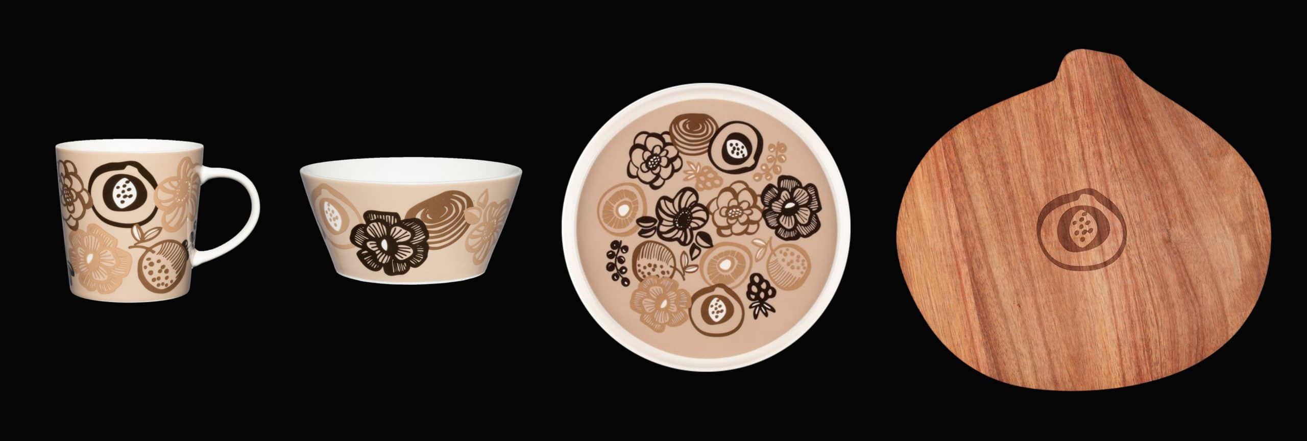 Beigen sävyinen Sarka Patula -kuosi on sarjan suosikki, joka hurmaa ajattomuudellaan. Kuosi jatkaa Makun valikoimassa, joten se on täydellinen lahja vaikkapa sarjan keräilijälle.